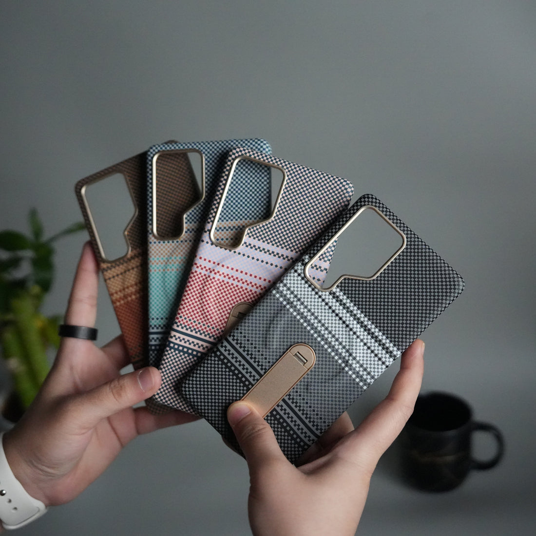 Samsung Galaxy Ultra Series Kevlar Fiber Texture Frameless Metal Kickstand Case